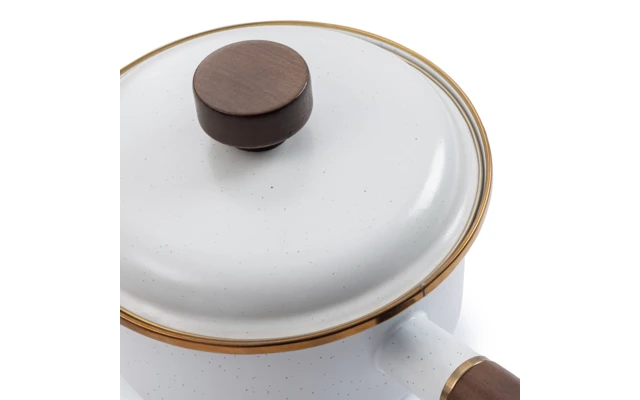 The Family enamel dinnerware set evokes a classic with a decidedly modern expression. Each item features a handcrafted fired stainless steel finish that creates a bronze-like patina, resulting in unique pieces that form a cohesive set.