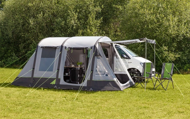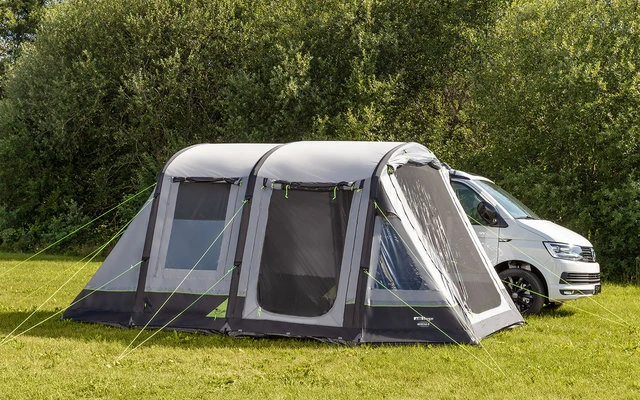 Free-standing and inflatable bus awning for vehicles with gutter height of 180 – 220 cm.
