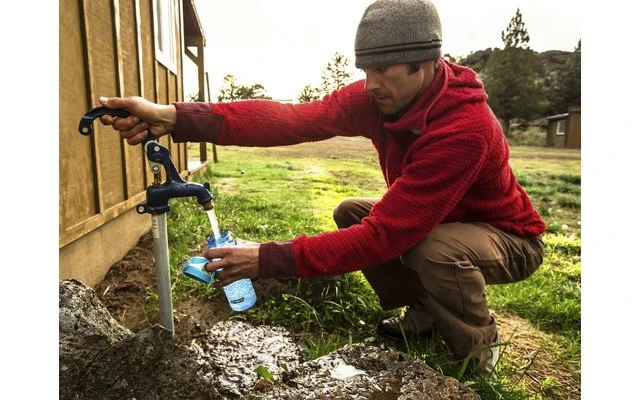 The drinking bottle from Nalgene with sophisticated closure technology. With one-hand pressure closure for quick and convenient drinking during your outdoor activities. The lid can also be closed 100% waterproof by means of a metal clip. By unscrewing the complete lid, the bottle can be quickly refilled and perfectly cleaned. Made of Tritan (TM) copolyester, the lid is made of polypropylene. Dishwasher safe. Super handy, the 0.65 L variant fits in standard cup holders – even when cycling. As usual with Nalgene with level indicator e.g. for safe mixing of mineral drinks.