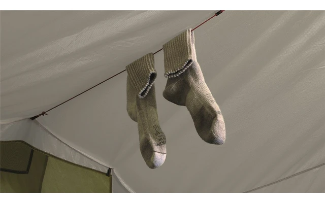 Four short corner poles are also attached to provide more space in the head and foot areas. The protected vents are accessible from the inside. Together with the entrance protected by mosquito netting, they improve ventilation.