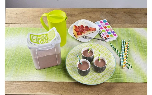 Syrup, iced tea or punch in the garden? Wasps, flies & Co. are regularly pleased about this. To protect you from unwanted visitors at your picnic or garden party, the Caruba jug is equipped with a lid – it can therefore also be transported to the picnic meadow or the swimming lake without any problems. To pour, twist the lid and choose between a free spout and a rake that retains ice cubes, pieces of fruit or seeds. Thanks to the wide, ergonomic handle and textured outer surface, the pitcher sits comfortably in your hand when pouring – so the precious contents are less likely to spill. Since nothing can break, the pitcher Caruba is also ideal for children’s birthday parties or parties.