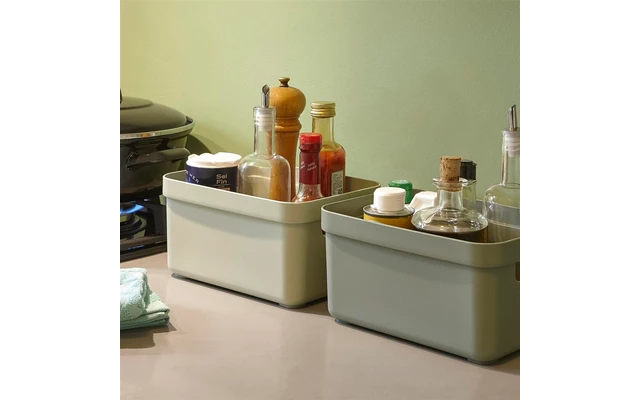 All Sigma home boxes have integrated handles – so they are easy to transport. In addition, the boxes have a stylish design and are – with lid – perfectly stackable. Design your own storage solution – with the separately available decorative lid.